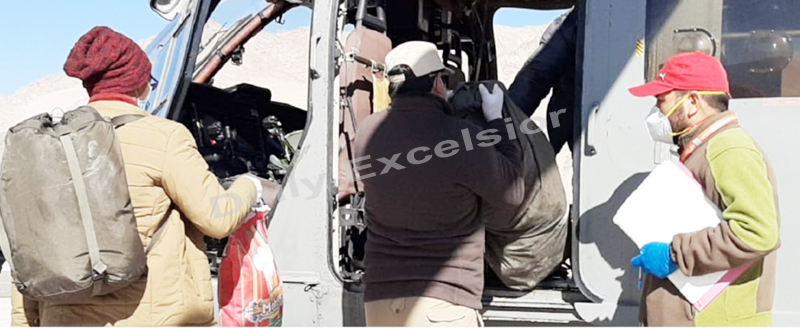 Polling staff boarding a chopper at Leh on Tuesday.-Excelsior/ Morup Stanzin By Daily Excelsior - October 21, 2020 Share FacebookTwitterWhatsAppPinterestLinkedinCopy URLTelegramEmailTumblrReddItPrintKoo Polling staff boarding a chopper at Leh on Tuesday.-Excelsior/ Morup Stanzin Polling staff boarding a chopper at Leh on Tuesday.-Excelsior/ Morup Stanzin Follow our WhatsApp channel