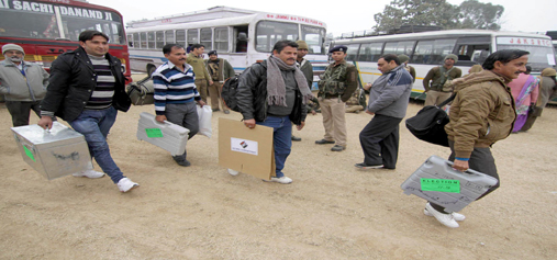 Polling staff leave for duty from Government Polytechnic College in Jammu on Friday. — Excelsior/Rakesh By Daily Excelsior - December 20, 2014 Share FacebookTwitterWhatsAppPinterestLinkedinCopy URLTelegramEmailTumblrReddItPrintKoo Polling staff leave for duty from Government Polytechnic College in Jammu on Friday. — Excelsior/Rakesh Polling staff leave for duty from Government Polytechnic College in Jammu on Friday. — Excelsior/Rakesh Follow our WhatsApp channel