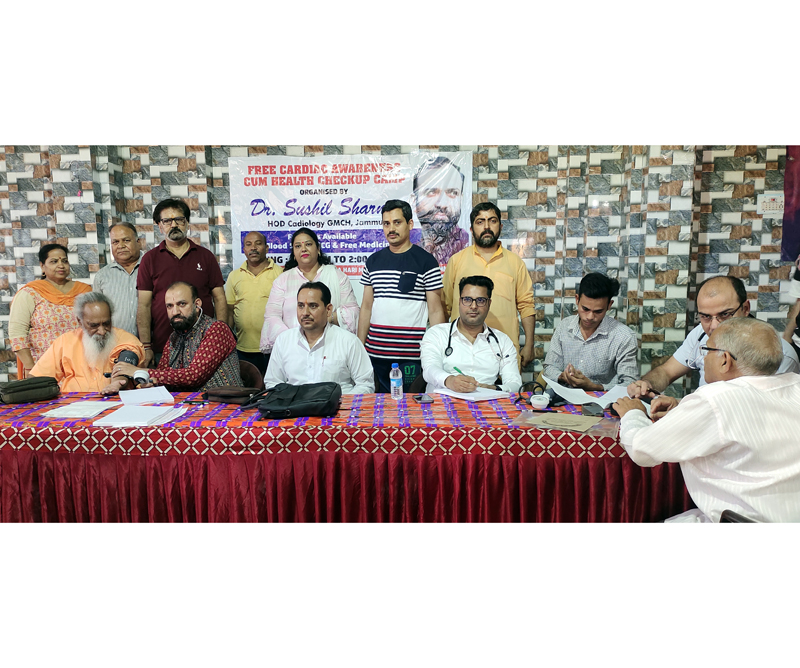 JAMMU, June 4: As pollution has shown a progressive and unrelenting course in recent times, Head Department of Cardiology Dr. Sushil Sharma held a day long cardiac awareness cum health check up camp at Hari Mandir , Rehari Colony Jammu in which people of all age groups and communities participated and they were educated about the rising prevalence of cardiac ailments due to ambient air pollution and ways to decrease the same. More than 450 people were screened, evaluated, diagnosed and free medicines were given as per the requirements.