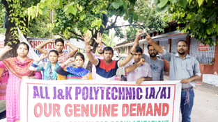 Polytechnic academic arrangements staff protesting for regularization policy on Wednesday. By Daily Excelsior - July 13, 2017 Share FacebookTwitterWhatsAppPinterestLinkedinCopy URLTelegramEmailTumblrReddItPrintKoo Polytechnic academic arrangements staff protesting for regularization policy on Wednesday. Polytechnic academic arrangements staff protesting for regularization policy on Wednesday. Follow our WhatsApp channel