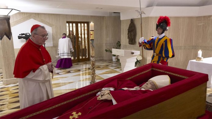 While the ordinary faithful will have an opportunity to pay their respects beginning Wednesday, Vatican officials were allowed to say their goodbyes starting Monday evening.