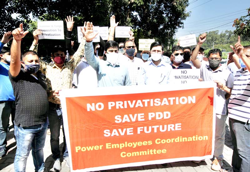 Power employees under the banner of PECC an amalgam comprising of various Unions of PDD led by Sachin Tickoo, general secretary JKEEGA, Jaipal Sharma, president DEA, Sanjeev Bali, Ajaz Kazmi, PPEU, Anil Slathia, Lineman and Workers Union, HD Singh, TEF Tarun Gupta, Balbir Singh Draftsman Association, Jasbir Singh ITI Employees, Kulbir Singh, PEEU, Gurmeet Singh among others held protests across both the Provinces of Jammu and Kashmir by carrying anti-privatisation placards.