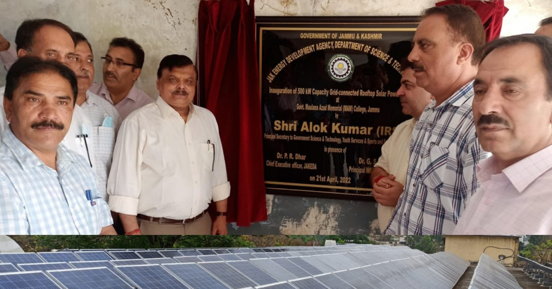 JAMMU, Apr 21: Principal Secretary, Science & Technology (S&T) Department, Alok Kumar today inaugurated 500 kWp capacity Grid Connected Rooftop Solar Power Plant at Maulana Azad Memorial (MAM) College here.