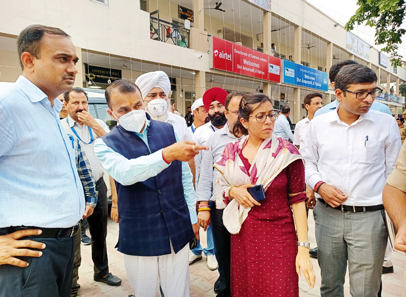 Pr Secy to LG, Nitishwar Kumar inspecting arrangements at Yatri Niwas, TRC in Jammu on Monday.