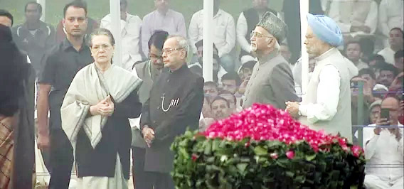 Dr Mukherjee, Dr Singh, Ms Gandhi and Former Vice President Hamid Ansari attended a commemorative programme to mark Pandit Nehru’s birth anniversary at Shanti Van.