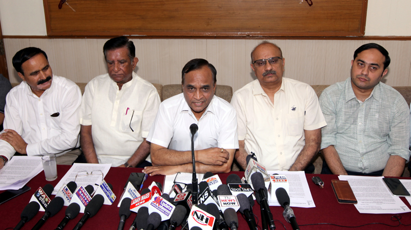 President Bari Brahmana Industries Association, Lalit Mahajan addressing a press conference in Jammu on Sunday.