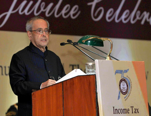 President Pranab Mukherjee addressing the All India members conference of the Income Tax Appellate Tribunal (ITAT) on the occasion of Platinum Jubilee of the ITAT, in New Delhi on Sunday. (UNI)