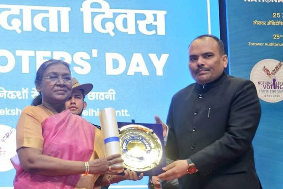 JAMMU, Jan 27: Jammu and Kashmir Chief Election Officer P K Pole was honoured by President Droupadi Murmu in the national-level programme organised on National Voters’ Day at Manekshaw Center in New Delhi.