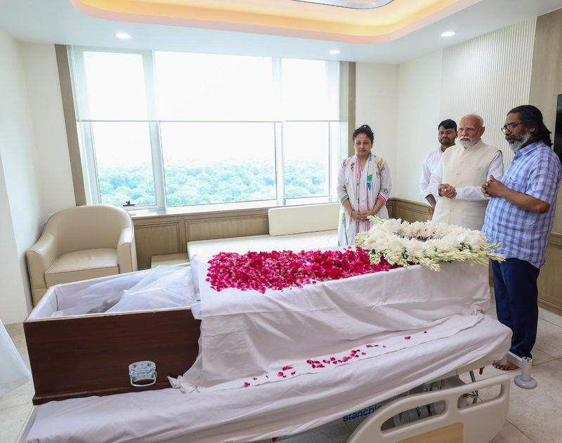 Earlier, Prime Minister Narendra Modi also visited the hospital to pay homage to the former Jharkhand chief minister.