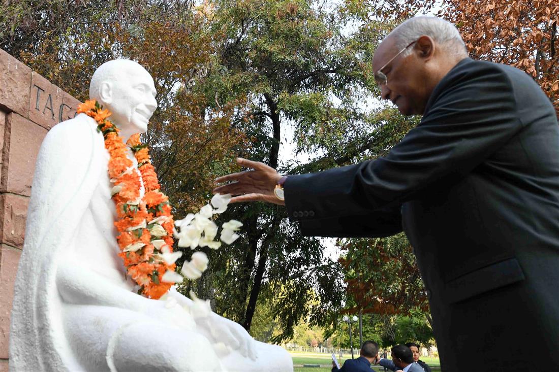 SANTIAGO (Chile): President Ram Nath Kovind paid floral tributes to Mahatma Gandhi at his statue at Plaza de la India in Chilean capital Santiago to commemorate his 150th birth anniversary and announced an assistance of USD 53,000 for the beautification of the area.