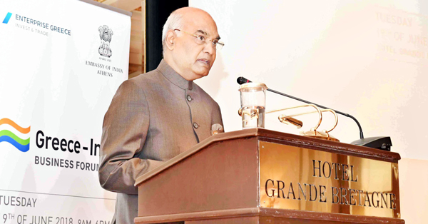 President Ram Nath Kovind addressing the India-Greek Business Forum Meeting at Athens, Greece on Tuesday. (UNI) By Daily Excelsior - June 20, 2018 Share FacebookTwitterWhatsAppPinterestLinkedinCopy URLTelegramEmailTumblrReddItPrintKoo President Ram Nath Kovind addressing the India-Greek Business Forum Meeting at Athens, Greece on Tuesday. (UNI) Follow our WhatsApp channel