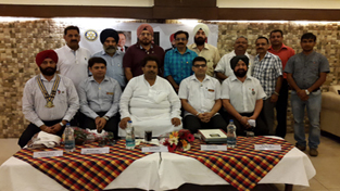 President of Rotary Club of Jammu Gurdev Singh Sodhi along with his team posing for group photograph with Minister for Horticulture, Culture and Housing Raman Bhalla and Assistant Governor Ashish Langer during installation ceremony at Amar Singh Club, Jammu on Monday.