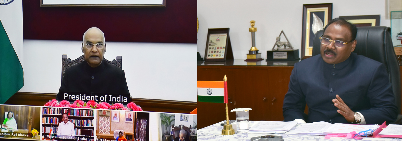 JAMMU : Lieutenant Governor, Girish Chandra Murmu today briefed the President of India, Shri Ram Nath Kovind, about the efforts of the UT Administration to combat COVID-19 pandemic in J&K during a video conference held by the President, along with Vice President, Shri M. Venkaiah Naidu with the Governors, Lt Governors and Administrators of all States and Union Territories to review the preparedness to deal with the evolving situation and discuss potential measures that can be taken by them to check the spread of COVID-19.