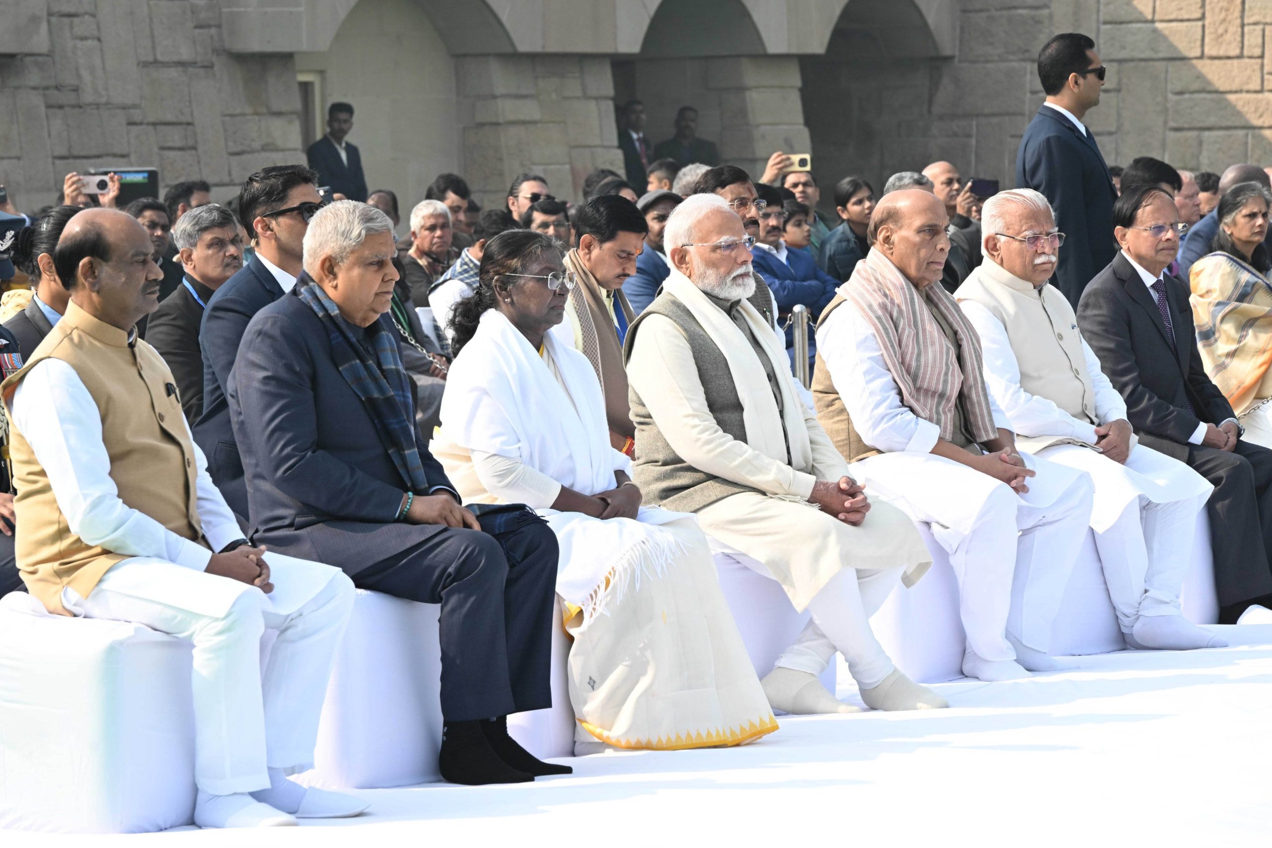 Vice President Jagdeep Dhankhar, PM Modi and Union ministers Rajnath Singh and Manohar Lal Khattar, among others, also paid floral tributes to the Father of the Nation.