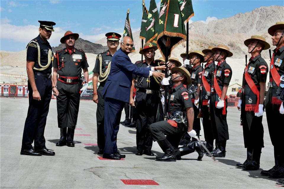 LEH/NEW DELHI: President Ram Nath Kovind today presented Colours to all five battalions and the regimental centre of the Ladakh Scouts during his first official visit to Leh in Jammu and Kashmir.