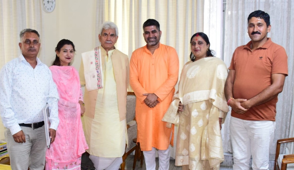 A delegation led by Shelpa Dubey, DDC Member Vijaypur in their meeting with the Lt Governor held discussion on employment opportunities in AIIMS Vijaypur for local youth and various other issues.