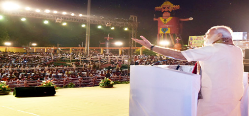 Prime Minister Narendra Modi addressing the gathering at Aishbagh Ram Leela in Lucknow, Uttar Pradesh on Tuesday. By Daily Excelsior - October 12, 2016 Share FacebookTwitterWhatsAppPinterestLinkedinCopy URLTelegramEmailTumblrReddItPrintKoo Prime Minister Narendra Modi addressing the gathering at Aishbagh Ram Leela in Lucknow, Uttar Pradesh on Tuesday. Prime Minister Narendra Modi addressing the gathering at Aishbagh Ram Leela in Lucknow, Uttar Pradesh on Tuesday. Follow our WhatsApp channel