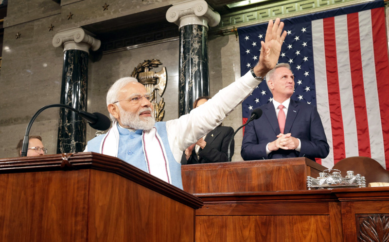 Prime Minister Narendra Modi addressing the joint session of US Congress in Washington DC. (UNI) By Daily Excelsior - June 24, 2023 Share FacebookTwitterWhatsAppPinterestLinkedinCopy URLTelegramEmailTumblrReddItPrintKoo Prime Minister Narendra Modi addressing the joint session of US Congress in Washington DC. (UNI) Prime Minister Narendra Modi addressing the joint session of US Congress in Washington DC. (UNI) Follow our WhatsApp channel
