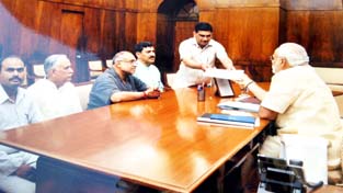 Prime Minister Narendra Modi along with RS MPs during a meeting with a delegation of West Pak refugees at New Delhi on Thursday.
