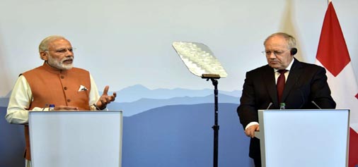 Prime Minister Narendra Modi and President of Swiss Confederation Johann Schneider-Ammann, during the Joint press statement, in Geneva, Switzerland on Monday.