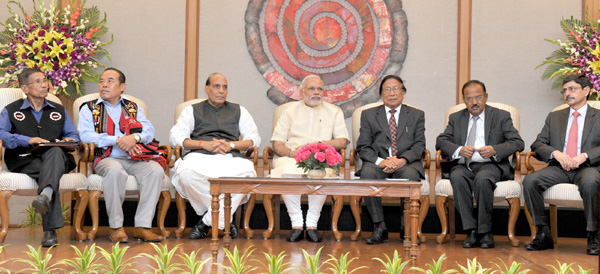 Prime Minister Narendra Modi at the signing ceremony of historic peace accord between Government of India and NSCN, in New Delhi on Monday.(UNI)