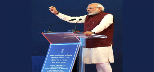Prime Minister Narendra Modi delivering his address on the 3rd and concluding day of the Conference of DGPs at Dhordo, Kutch in Gujarat on Sunday.