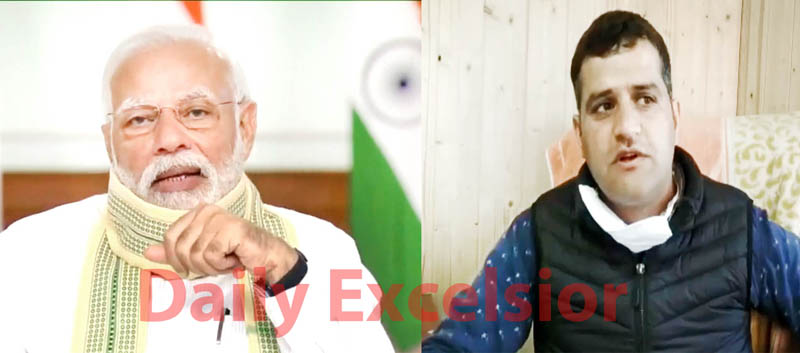 Prime Minister Narendra Modi interacting with Mohammad Iqbal, BDC chairman of Narwav block in Baramulla district of Kashmir on Friday.