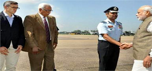 Prime Minister Narendra Modi with J&K CM Omar Abdullah is welcomed by officials during a visit flood-ravaged areas to assess the damage. By Daily Excelsior - September 7, 2014 Share FacebookTwitterWhatsAppPinterestLinkedinCopy URLTelegramEmailTumblrReddItPrintKoo Follow our WhatsApp channel