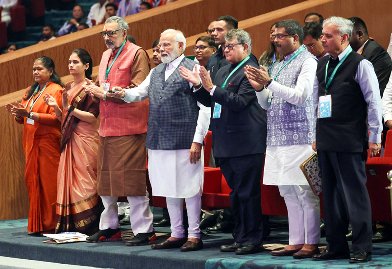 Prime Minister Narendra Modi launches ‘Sankalap Saptaah’ program at Bharat Mandapam in Pragati Maidan, New Delhi on Saturday.