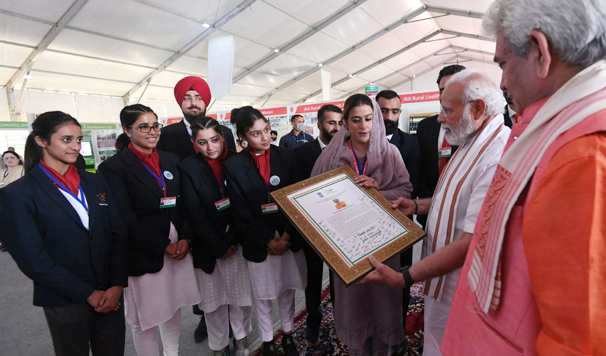 Prime Minister Narendra Modi visits the exhibition in Samba on Sunday. (UNI)