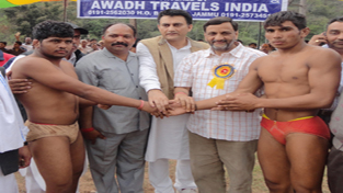 KATRA, Apr 17: Wrestler Prince of Amritsar and Benia Min of J&K Police of Udhampur emerged joint winners of the 68th Jhajjar Kotli Kesari Dangal, here today. The final bout remained undecided which was fought in a neck to neck fight for 25 minutes. Fanally, both the wrestlers were jointly presented Rs 31,000 by Rakesh Wazir, Shiv Kumar Sharma, Ravi Kumar Baru and Durga Dass Thappa. Ravi Kumar Baru owner of Awadh Travels contributed the prize money as financial assistance to the organizers. For1st malli bout Rakesh Wazir, State general secretary BSP, who was the chief guest on the occasion, also contributed Rs 11,000 as financial assistance. He later-on, distributed prizes among the winner and the runner-up wrestler. Treasurer Indian Style Wrestling Association of India, Shiv Kumar Sharma, who is also President J&K Indian Style Wrestling Association presided over the function. SHO Jhajjar Kotli, Ravinder Singh Jasrotia was the guest of honour, Sarpanch Jhajjar Kotli, Madan Mohan Dubey, general secretary District Reasi Indian Style Wrestling Association, Naresh Kumar (Pappu Lakri) and ASI Tilak Raj were also present on the occasion. Dangal was organized by Jhajjar Kotli Dangal Committee in Association with J&K Indian Style Wrestling Association, under the supervision of Mr Sharma and Durga Dass Thappa.