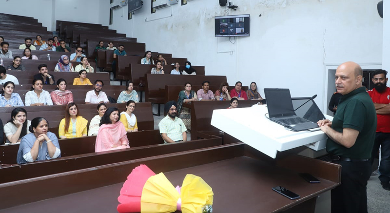Principal and Dean, GMC Jammu, Dr Ashutosh Gupta addressing PG Research Scholars during a workshop in the College auditorium.