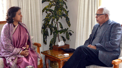 JAMMU, Feb 13: Sangeeta Gupta, Principal Commissioner Income Tax, J&K, called on Governor N.N. Vohra, at the Raj Bhavan today.