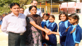 Principal HSS Bishnah, Satya Devi along with DYSSO Jammu Tirath Ram interacting with players at Bishnah on Thursday.