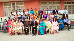 Principals, coordinators and teachers from 38 CBSE schools of Jammu posing after conclusion of a 2-day workshop at Model Academy.