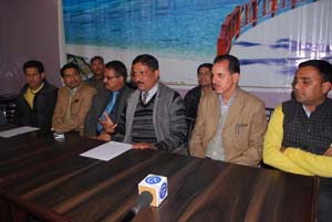 Members of Private School Association addressing a press conference at Kathua on Thursday.