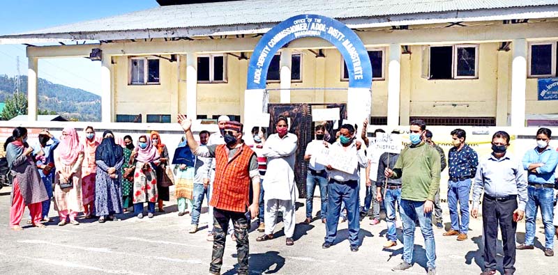 Members of Private Schools Association during protest at Bhaderwah. -Excelsior/Tilak Raj