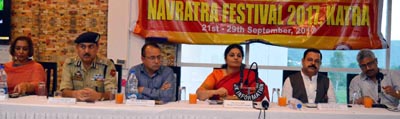 JAMMU, Sept 17: Minister of State for Education, Technical Education, Culture, Tourism, Horticulture, Floriculture and Parks, Priya Sethi presented the curtain raiser to the Navratra Festival being organized by Tourism Department in collaboration with Shri Mata Vaishno Deviji Shrine Board from 21st to 29th September at Katra today. The Minister highlighted various activities planned for the 9 day Festival.
