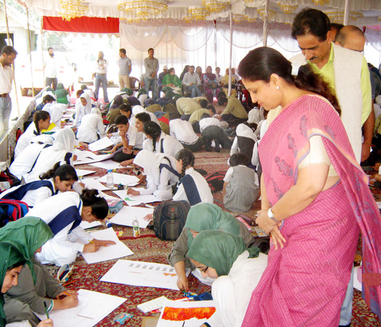 MoS for Education and Culture Priya Sethi during a painting competition at Srinagar on Wednesday.
