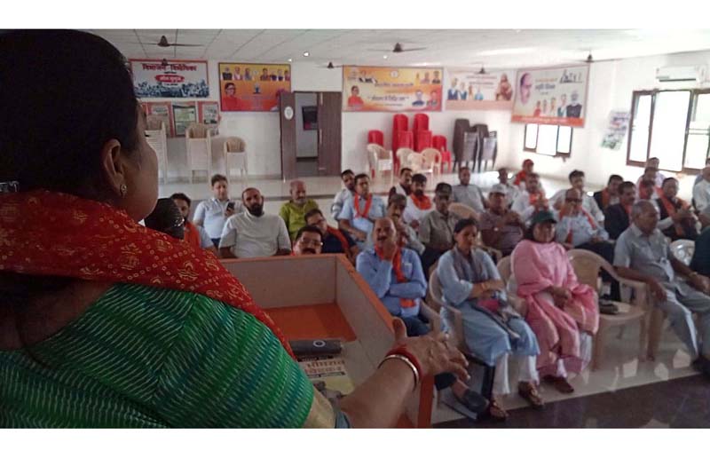 BJP senior leader and Prabhari Kathua, Priya Sethi addressing a workers meeting at Kathua on Wednesday.