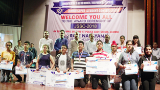 Prof. Ashok Aima, VC Central University of Jammu awarding the winners of Super Student Contest 2018 at Police Auditorium Jammu. By Daily Excelsior - April 8, 2018 Share FacebookTwitterWhatsAppPinterestLinkedinCopy URLTelegramEmailTumblrReddItPrintKoo Prof. Ashok Aima, VC Central University of Jammu awarding the winners of Super Student Contest 2018 at Police Auditorium Jammu. Follow our WhatsApp channel