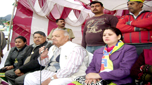 Prof Chaman Lal Gupta addressing public meeting at Bhaderwah on Saturday.             -Excelsior/Tilak Raj