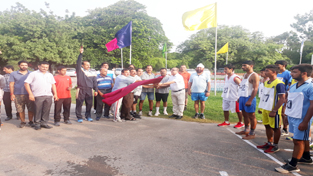 Prof Keshav Sharma, Dean Academic Affairs, JU flagging off Inter-Collegiate Cross Country in Jammu.