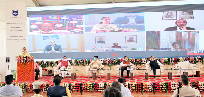 Prof Neelu Rohmetra, Director IIM Sirmaur highlighting salient features of upcoming campus during foundation stone laying ceremony on Tuesday.