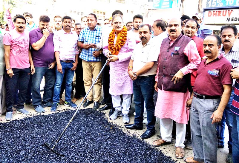 JAMMU, Oct 19: Former Deputy Chief Minister and MLA, Gandhi Nagar, Kavinder Gupta along with MLC, Vikram Randhawa today started blacktopping of the interior roads of Hajipura Patel Nagar in Gandhi Nagar Constituency which would be completed at the cost of Rs 63 lacs. This was long pending demand of the inhabitants of the area.