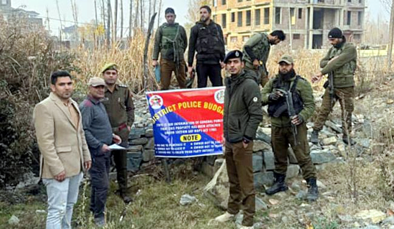 Police said the properties attached include a double-storeyed residential house in Harwani Khansahib belonging to Manzoor Ahmad Chopan alias Rayees, a similar structure along with over five kanals of land in Chewa Budgam owned by Mohammad Yousuf Malik alias Molvi, and nearly 20 marlas of land in Khag registered in the name of Bilal Ahmad Wani alias Umer.