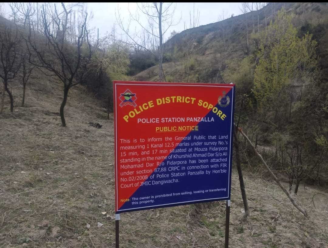 As part of ongoing efforts against the terror ecosystem, police in the Sopore area attached an immovable property belonging to an absconding suspect linked to an Egress and Internal Movement (Control) Ordinance (EIMCO) case registered at the Panzalla police station, a police spokesman said.
