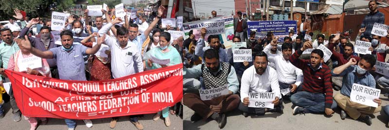 JAMMU/SRINAGAR, Mar 28: Demanding restoration of Old Pension Scheme, protest demonstrations were held by All India Pension Restoration United Front (AIPRUF)/ JK Teachers Association (JKTA) and J&K United School Teachers Association (USTA), here today.