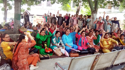 Led by Neelam Kumari, president, FMPHWs’ Welfare Association, the Female Multipurpose Health Workers staged protest in office complex of Directorate of Health Services (DHS), Jammu today as usual. Same type of protests and dharnas were also held in Sunderbani, Rajouri, Reasi, Banihal, Ramban, Kishtwar, Doda, Bani, Basholi, Padder and Kathua.