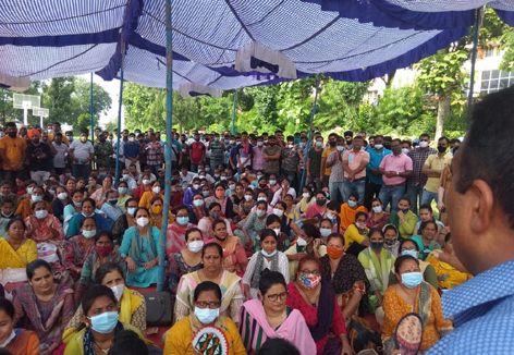 Sachin Bali (general secretary of ASCOMS Employees Welfare Association), Rakesh Chouhan (president of the Association) and Suresh Raina also addressed the workers.